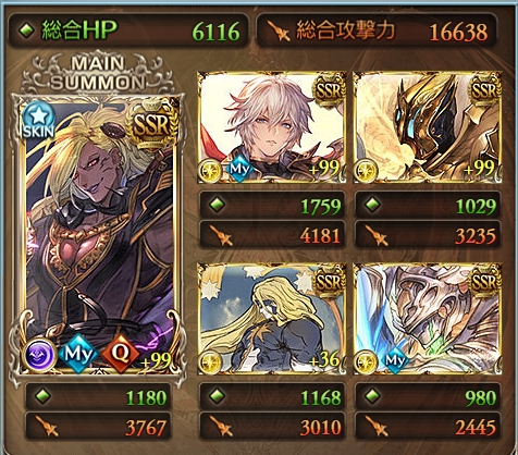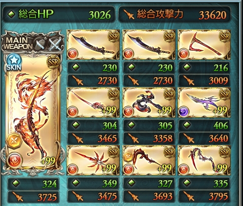 召喚石や武器、キャラに全て「+99」が付いてるコトに。