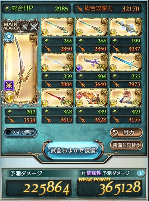 同じ要領で、編成している武器全てに ボーナス「+99」を付与する。
