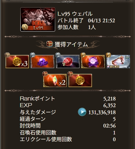 古戦場本戦初日で、HELL 95 & HELL 100が追加され、