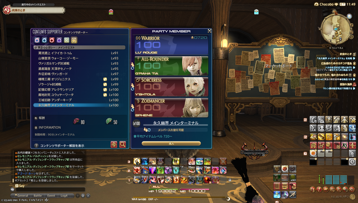 マーケットボードで頭装備を購入し、コンテンツサポーターにて突入。